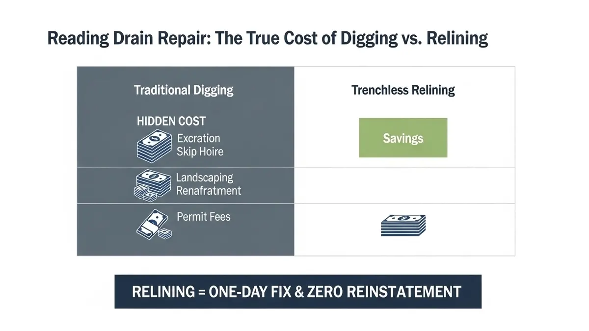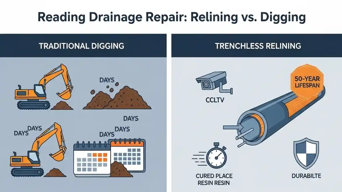 Avoid costly, messy excavations. Compare Manningtree Drain Relining vs Digging to save your home, time, and money with our expert, minimally invasive, and durable no-dig repair solutions for local drains.